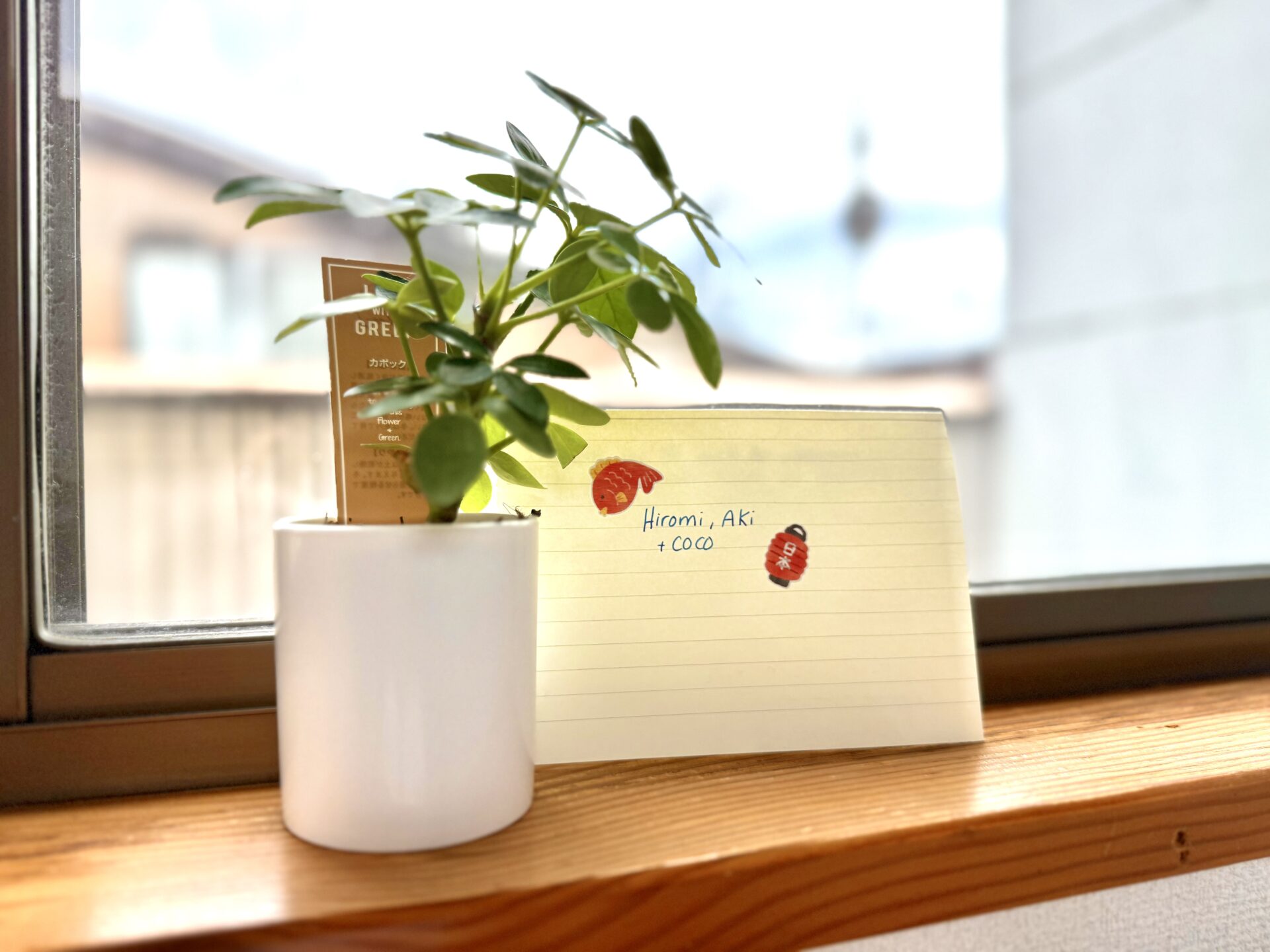 たくさんの国を旅した中で、今回の日本旅行はいかがだったでしょうか。心温まる可愛いお手紙をありがとうございました。心から感謝します。いただいたグリーンは、家に飾らせていただいてます。大きくなるように、大事に育てます!ありがとうございました!