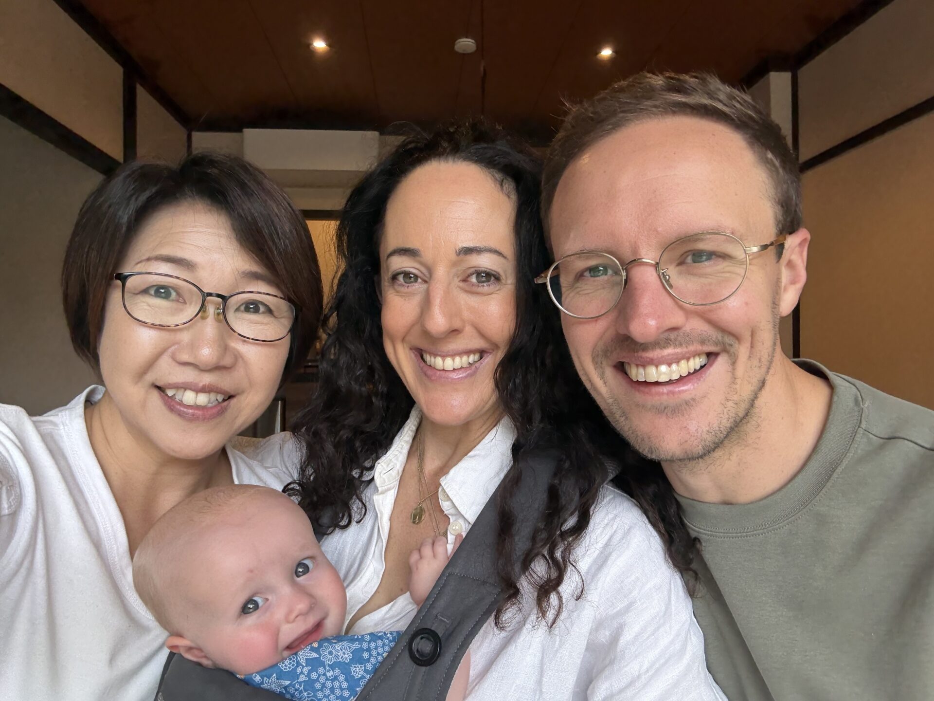 赤ちゃんを抱っこしてです。すごい!