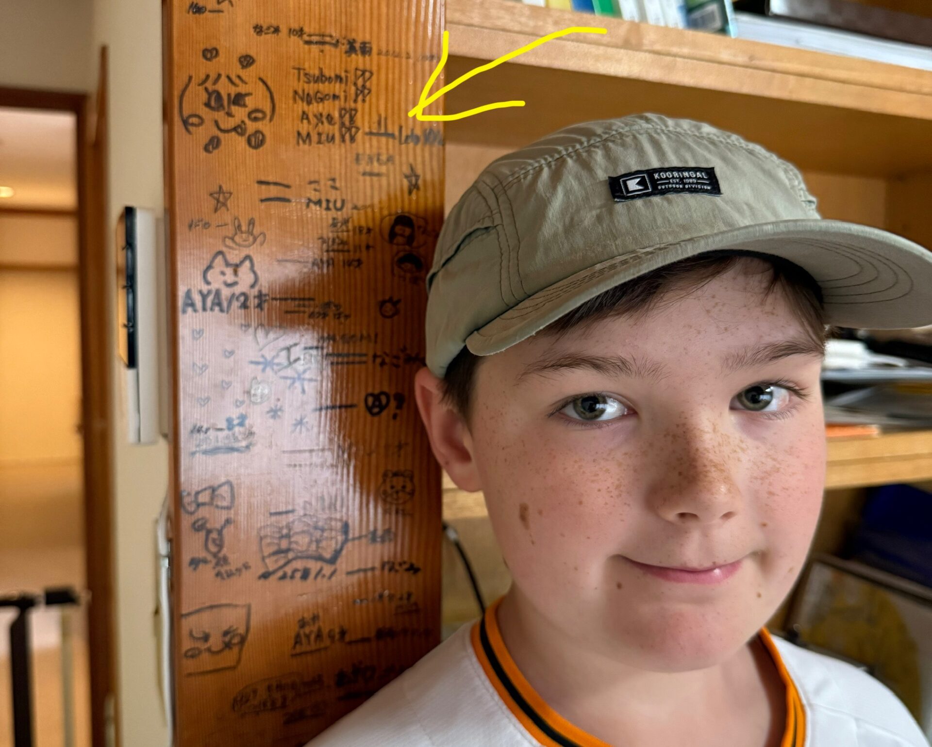 そのリビングルームには、子供達が身長をマークした柱があります。