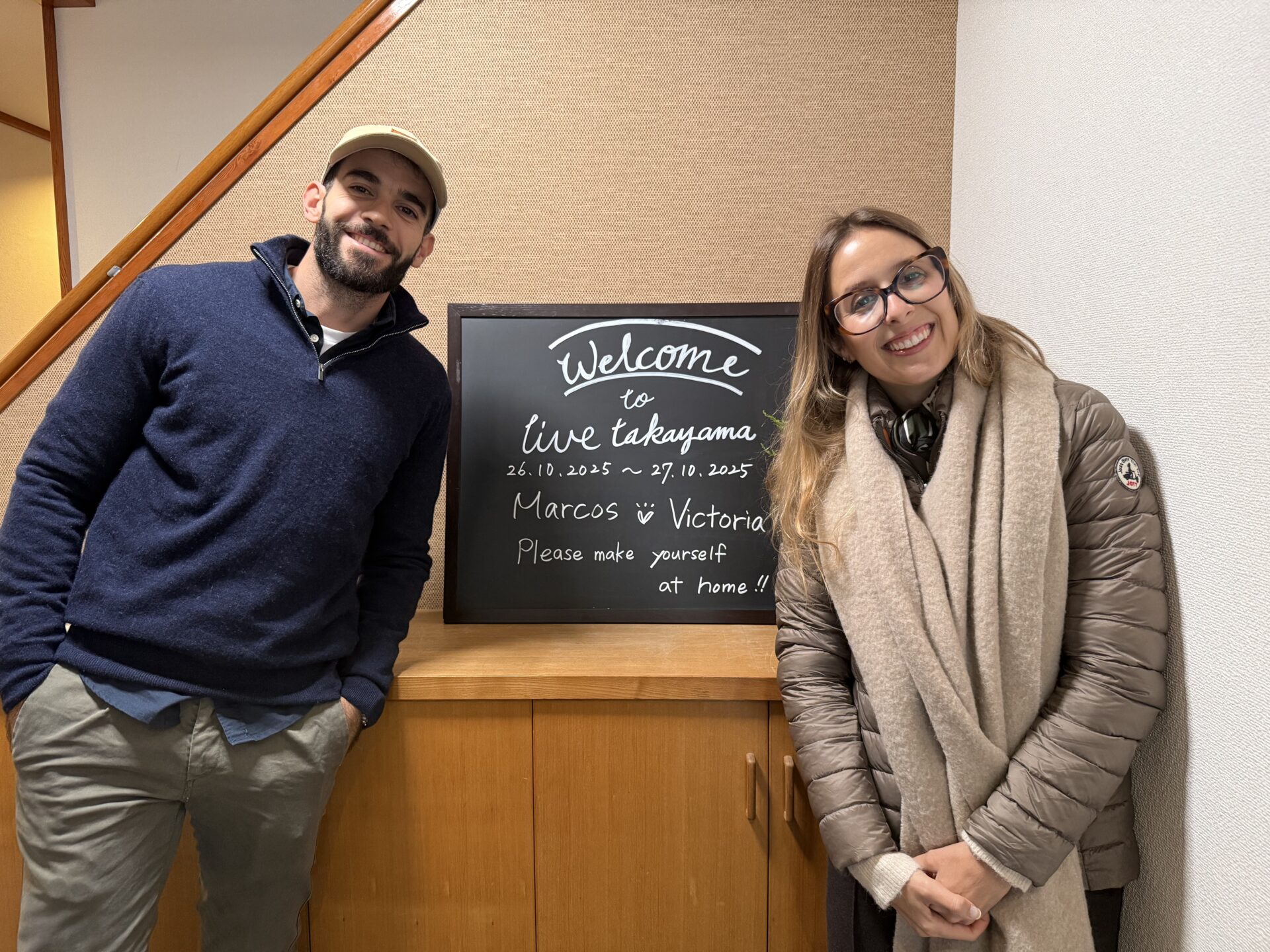 「この度はlive takayamaにご宿泊していただき、ありがとございました。新婚旅行の滞在先に選んでいただけたこと、大変光栄に思います。記念日が同じ日だとお聞きし、ビックリしたと同時に嬉しかったです。今回の日本旅行は、新婚旅行として思い出深い旅になったでしょうか。いつか記念日にぜひまた、日本へお越しください。その時にまたお会いできれば嬉しく思います。」